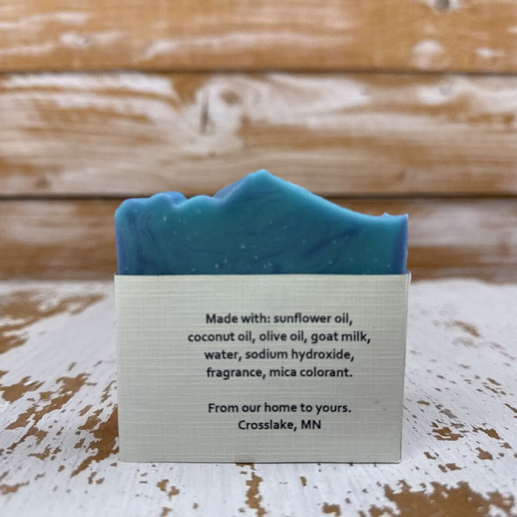 Made with: sunflower oil, coconut oil, olive oil, goat milk, water, sodium hydroxide, fragrance, natural colorant. 4.75 oz Made in the United States of America