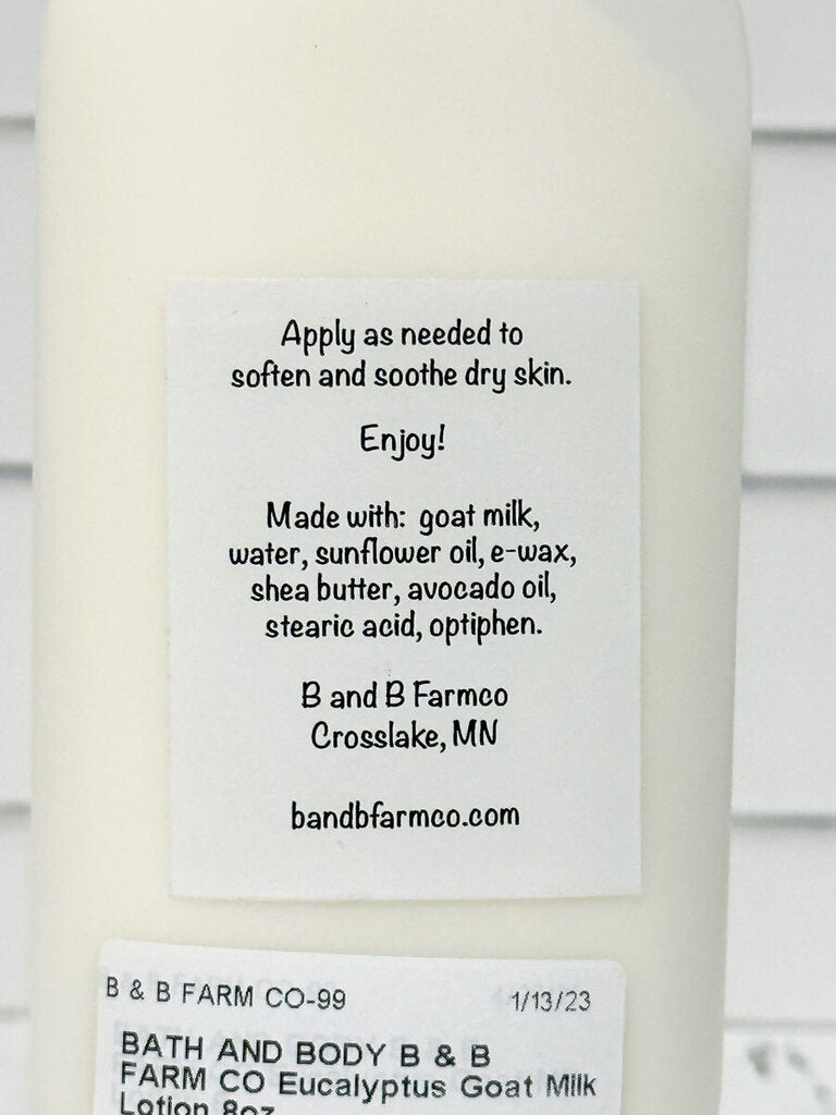 You will love the beautiful fragrance of our Sweet Balsam Goat Milk Lotion which has a mix of apple, fig, caramel, cinnamon, and balsam forest notes. Non-greasy, making it suitable for face, body and hands. 8oz pump top. Made with goat milk, distilled water, sunflower oil, emulsifying wax, shea butter, avocado oil, stearic acid, fragrance, optiphen*. *Paraben and formaldehyde free preservative. Made in United States of America