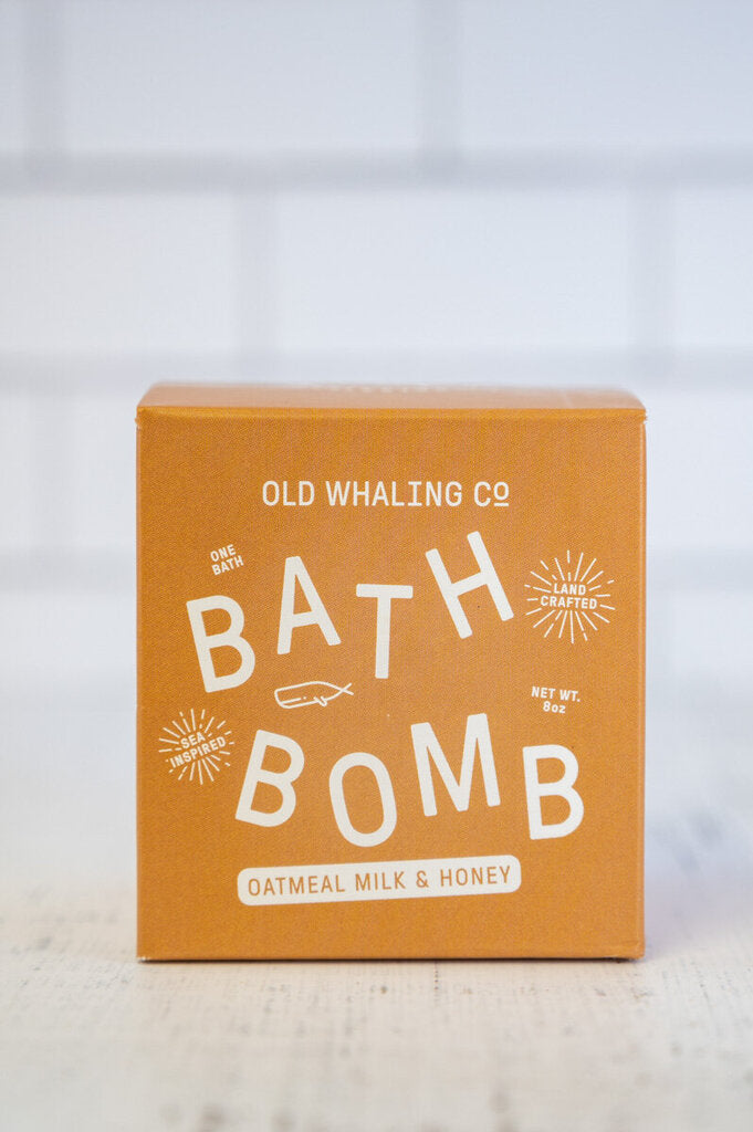 Our bath bombs are carefully mixed in-house by hand. They are loaded with epsom salts and oils for a lovely, relaxing soak that will cleanse, moisturize and refresh. Our Oatmeal Milk + Honey fragrance is warm and almondy. Made with oats, the bath bomb is perfect for a soothing and relaxing bath. 2.75” round, 8oz bath bombs. Ingredients: Baking Soda Citric Acid Soybean Oil Olive Oil Epsom Salt Distilled Water Fragrance Oats Made in United States of America